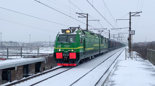 Последний зелёный — 2ЭС4К-036 с грузовым поездом