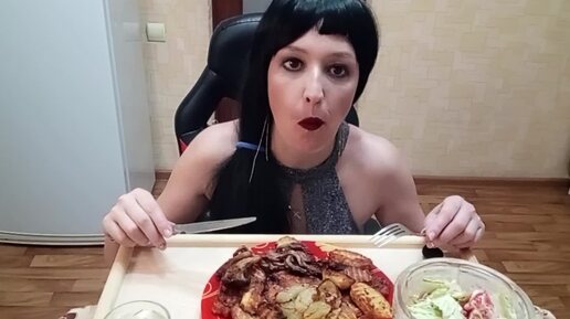 МУКБАНГ/СТЭЙК КАРТОШКА/ЛУК ЖАРЕННЫЙ/САЛА ИЗ ПЕКИНСКОЙ КАПУСТЫ С ПОМИДОРАМИ🍄🟫🍄🟫🍄🟫🥩🥩🤑🥗🥗🥗