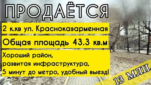 Идеальная двухкомнатная квартира на Красноказарменной! Всего 5 минут до метро «Авиамоторная»