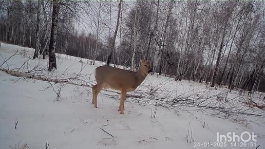 Кадры с фотоловушки. Сибирские косули в лесу.