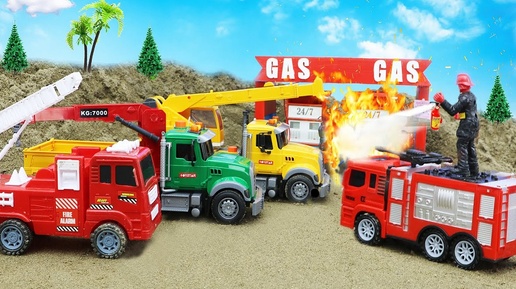 Экскаватор, Пожарная Машина, Кран, Легковой Транспорт - Red Jeep Rescue и Строительство Заправочной станции