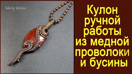 Кулон ручной работы из медной проволоки и бусины. Автор: Валерий Воробьев. Мастерская Рукодел - Rukodel.