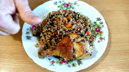 Простое и очень вкусное блюдо: Гречка с грибами и курицей на сковороде.