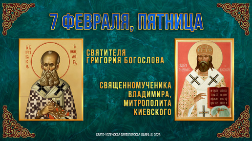 Свт. Григория Богослова. Сщмч. Владимира, митрополита Киевского. 7 февраля 2025 г. Календарь