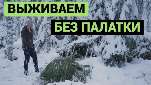 Выживаю зимой в лесу без палатки | Укрытие из веток