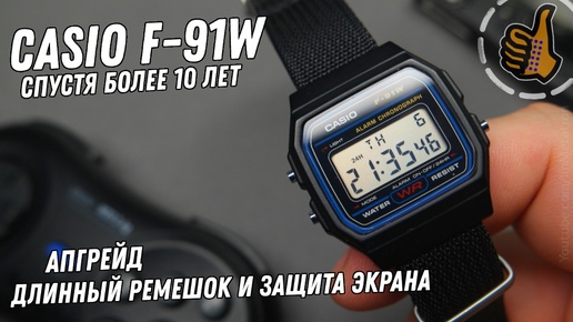 Casio F-91W - ремешок для большого запястья и защита дисплея