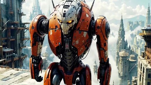 "Слияние стимпанка и киберпанка" AI-ролик