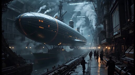 "Футуристический стимпанк в темных тонах" AI-ролик