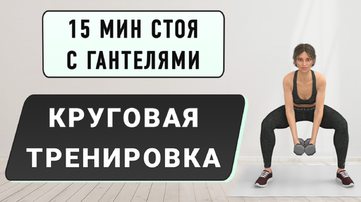 15 мин ВСЕ ТЕЛО С ГАНТЕЛЯМИ💪 Круговая тренировка стоя на все группы мышц (7 упражнений - 3 круга)