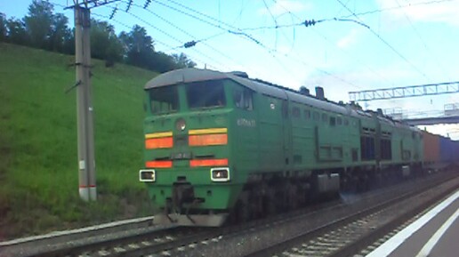Тепловоз 2ТЭ10М-3332 с контейнерным поездом. Звук 10Д100.