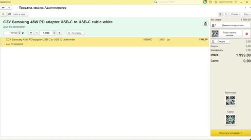 Демонстрация работы кассира с модулем интеграции UDS и 1С