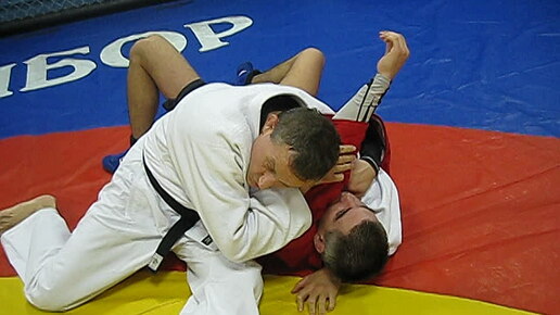2015 год. Вариант болевого приема на защиту соперника от удушения руками.