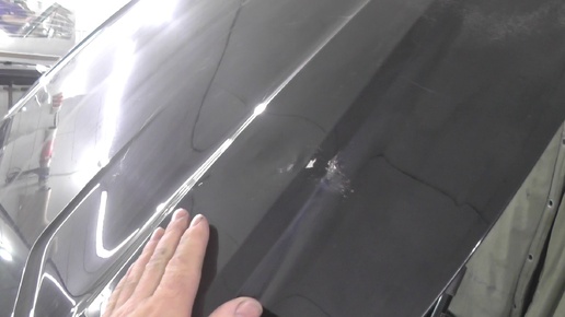 Движ в гараже. Капот из алюминия. Какой-то китайский лак.