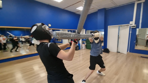 Спарринг на длинных двуручных японских мечах чанбара о-катана тёкен в школе кэндзюцу Katana Club