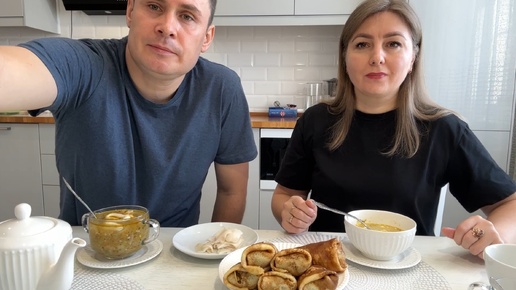 Обедаем/Вкусные щи/Деревенское сало/Блины