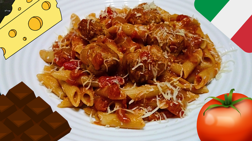 МАКАРОНЫ С ТЕФТЕЛЯМИ В ТОМАТНО-ШОКОЛАДНОМ СОУСЕ / Быстрый вкусный ужин по-итальянски