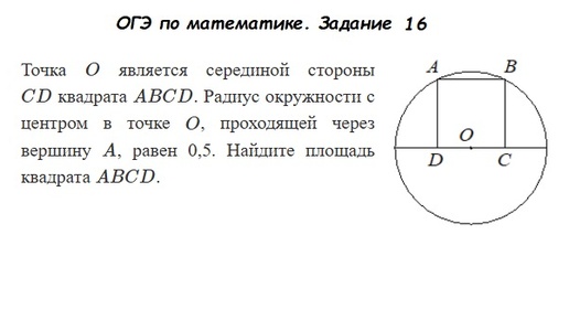 ОГЭ. Задание 16. Новая задача. Найти площадь квадрата через радиус окружности