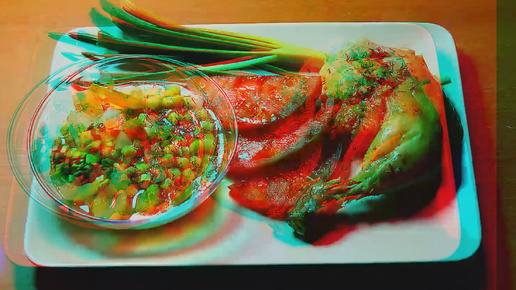 3D stereo red-cyan Курица с нутом в духовке