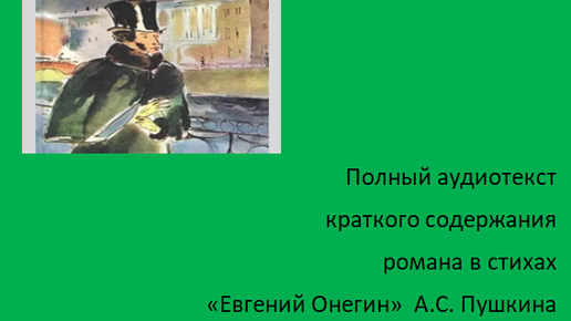 Далее: Аудиотекст полного содержания романа в стихах "Евгений Онегин" А.С. Пушкина (все главы)