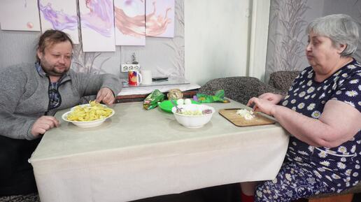 Помогаю маме готовить закуску Мама готовит я ем чипсы Показываем как приготовить вкусное блюдо из кукурузы огурца и чипсов Кулинария