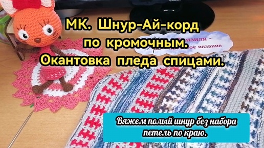 МК. Как вязать окантовку Ай-корд полый шнур без набора петель по краю. Как обвязать углы пледа спицами Ай-кордом.