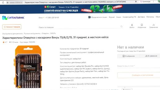 Отвертка с насадками Вихрь