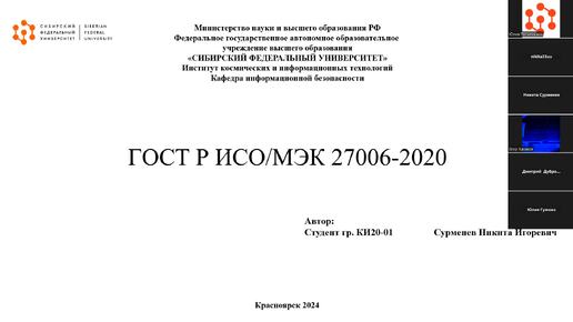 ГОСТ семейства 27000. ГОСТ Р ИСО_МЭК 27006 Требования по сертификации (Сурменев Никита, КИ20-01)