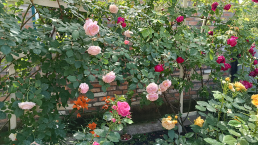 Розы Аква (Agua), Э Шропшир Лэд (A Shropshire Lad). Весна 2024г, начало цветения роз.