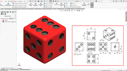 SolidWorks: 3D модель для тренировки № 32 - Игральный кубик