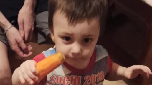 Маленький ребенок учится готовить: блюдо - жарено-варенная морковь)