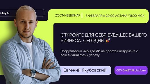 O-key.ai - платформа с ИИ в помощь бизнесу. Онлайн презентация, ведёт Евгений Якубовский.