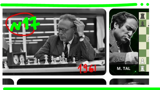Михаил Таль обрушивает искренность своих черных фигур на беднягу белого короля Ботвинника в партии 17 матча 1961 г. Мат 2 слонами в доигрыва