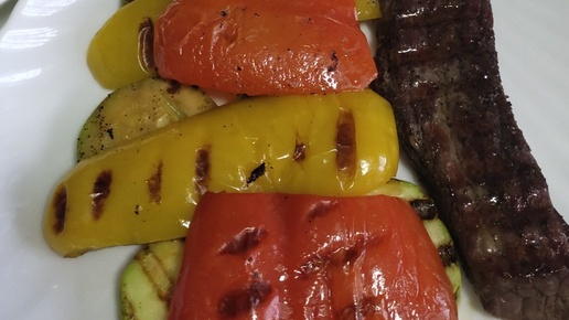 Стейк из говядины с овощами на гриле//Очень вкусно!//