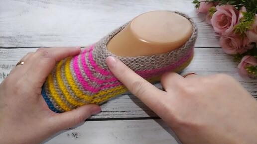 🌹Мастер класс спицами 🌹"Разноцветные тапочки "🌹Размер 38-39