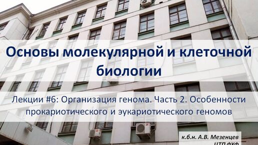 Основы молекулярной и кл. биологии (2024) Л 6 Организация генома. Ч 2 Особенности организации прокариотического и эукариотического геномов
