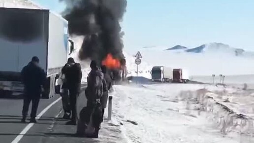 Момент возгорания рейсового автобуса в Забайкалье попал на видео