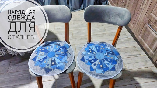 Одежда для стула - джинсовая сидушка, использовала даже самые маленькие джинсовые лоскутки!