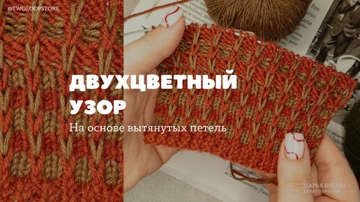 ДВУХЦВЕТНЫЙ УЗОР на основе вытянутых петель | 2 варианта провязывания | Марья вязала