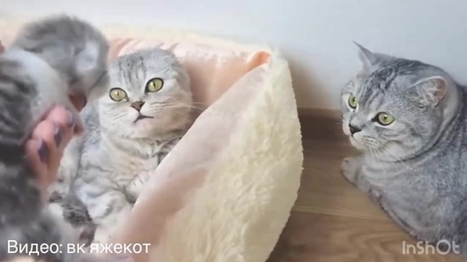 Папа-кот пришел знакомиться со своими котятами и нежно поцеловал кошечку!