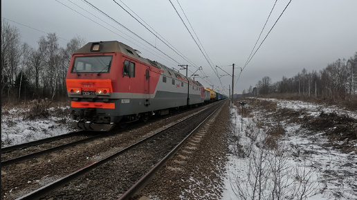 Электровоз 2ЭС6-715 с грузовым поездом проезжает о.п 252км