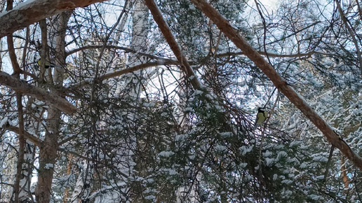 Птицы в зимнем лесу