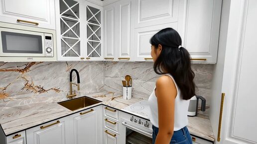 Анимация белая кухня с зеркалами