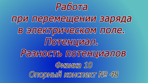 Физика10 ОК 048 Работа при перемещении заряда в электрическом поле. Потенциал. Разность потенциалов