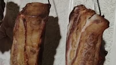 Домашняя, копчёная колбаска и конечно сАльце. Это так вкусно.