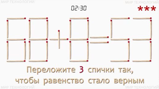 Задача со спичками 404 (4). Переложите 3 спички так, чтобы равенство стало верным (68+8=53)