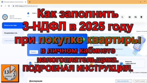 Как заполнить онлайн декларацию 3-НДФЛ за 2024 год в личном кабинете налогоплательщика (в 2025 году), налоговый вычет при покупке квартиры
