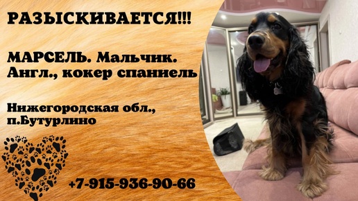 Пропала собака! МАРСЕЛЬ. Мальчик. Англ., кокер спаниель. Нижегородская обл., п.Бутурлино.