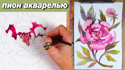 Как нарисовать пион акварелью, как нарисовать цветок пошаговый урок