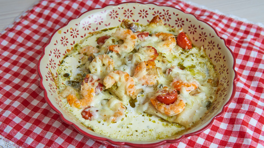 Это просто кулинарный шедевр! Треска с креветками в сливочном соусе 🐟🦐