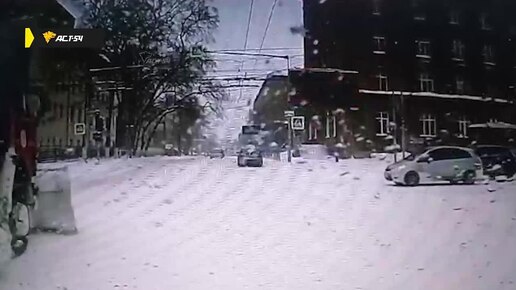 Снегоуборщик поехал на красный и протаранил новый трамвай в Новосибирске